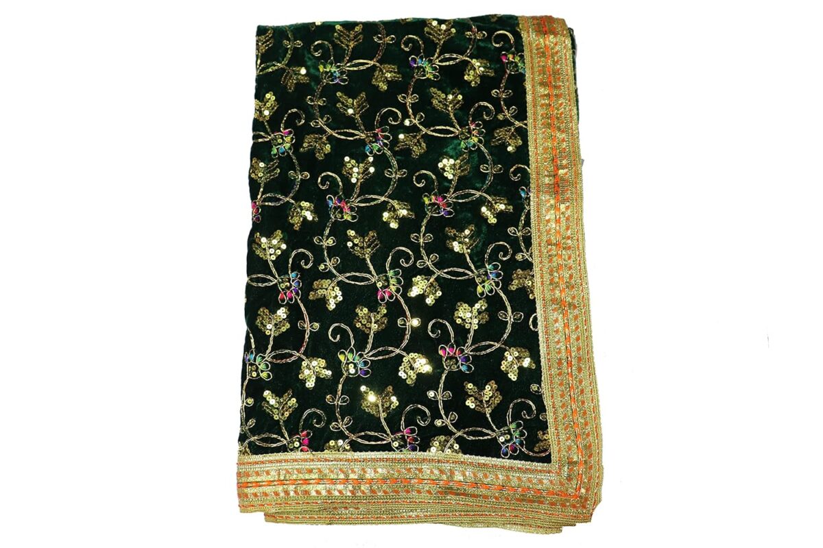 Reliable Velvet Embose Work Puja Altar Cloth for Multipurpose Use Devi MATA Chunri Saibaba Sharna Cum Dupatta/Puja Chunni Cloth for Puja Table Size – 1 Meter