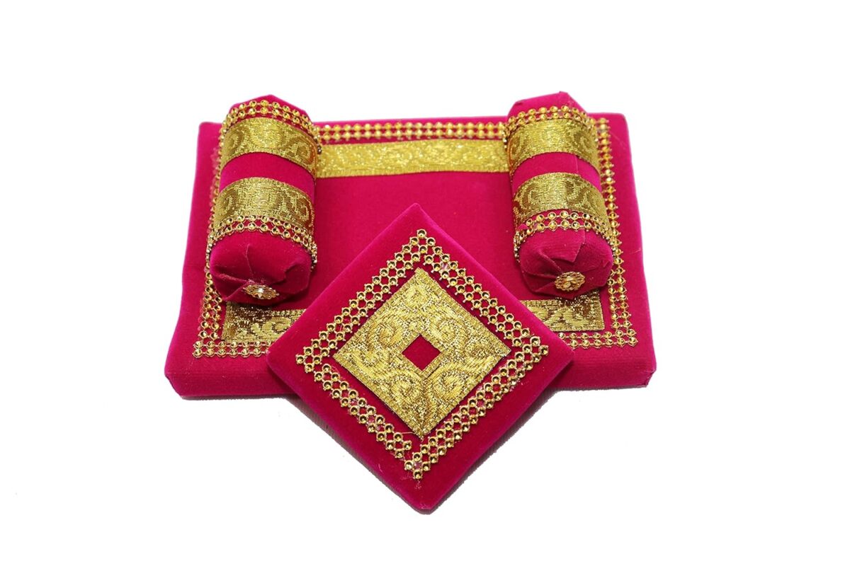- Velvet Puja Aasan Cloth comes with a beautiful embroidered design surrounding it along all corners.To enhance the look of this puja velvet cloth ,The elegant design combination of the cloth gives this Red chowki aasan a very lustrous royal feel.