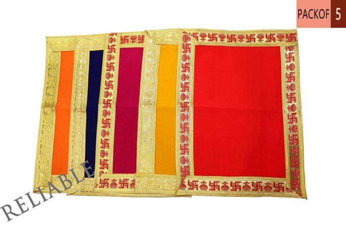 Reliable Multicolour Puja Assan Velvet Puja Cloth/Puja Aasan/Puja Chowki Assan Plain Velvet Puja Altar Cloth for Pooja Home Mandir, Temple and Pooja Ghar Size – 10 * 13 Inch (Pack of 5)