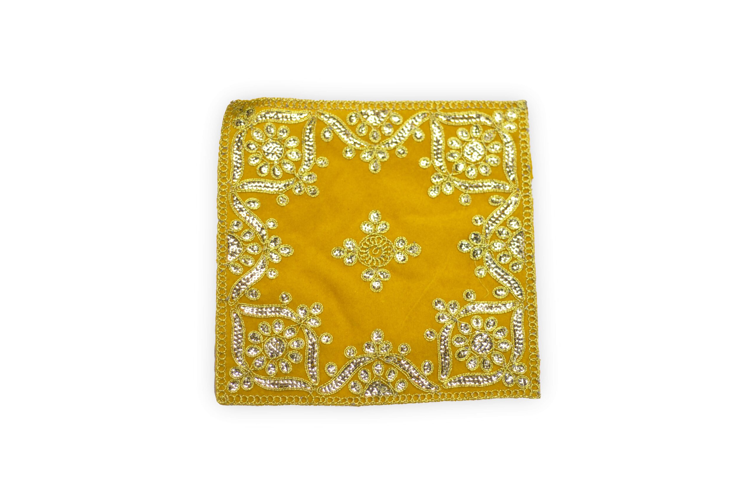 - Usage – Our Pooja Aasan Cloth can be used as base of your temple especially on the chowki of any Puja / Hawan or you can place it on Mata ki Chowki, Puja tables, deity thrones, wooden bajot, pedestals etc